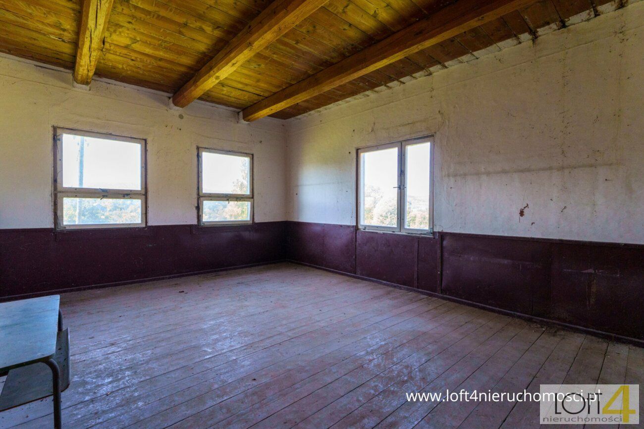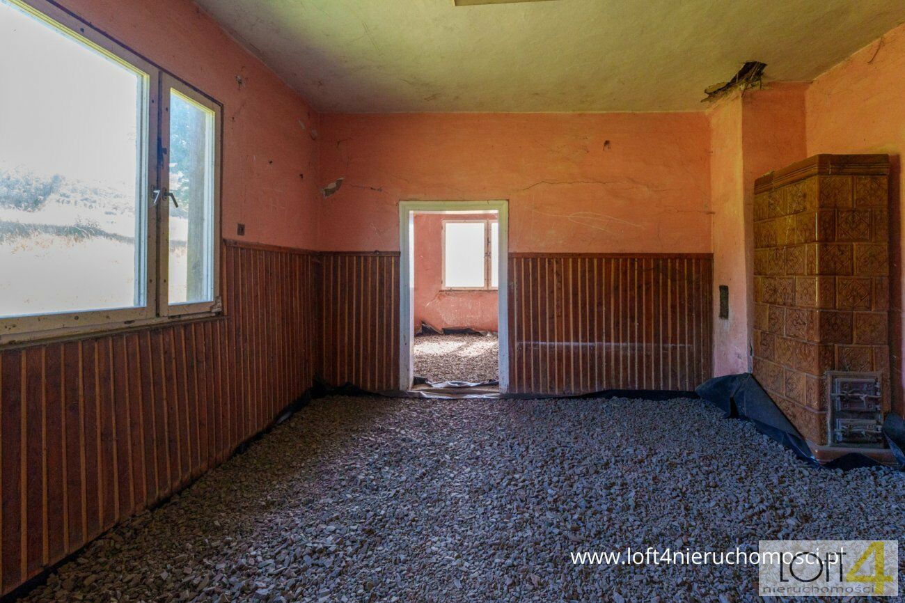 Na sprzedaż dom z duszą - drewniany budynek o imponującej powierzchni 266,4 m2, wraz z poddaszem. Natomiast sam parter to ponad 123 m2, zlokalizowany na malowniczej działce widokowej. To idealna baza do stworzenia wyjątkowej, klimatycznej przestrzeni mieszkalnej. Budynek posiada poddasze na całości, które można zaadaptować według własnej wizji, oraz piwnicę z pięknym, łukowym sklepieniem. Wnętrze kryje wiele pomieszczeń, które można przeznaczyć na salon, kuchnię, łazienki, sypialnie - możliwości są ogromne! Klimatu dodają cztery oryginalne piece kaflowe, a na podłogach zachowane są drewniane deski. Media dostępne na miejscu: prąd, gaz, woda miejska oraz szambo. Solidny kamienny fundament stanowi świetną bazę do remontu i adaptacji. To dom z historią, który czeka na kogoś, kto tchnie w niego nowe życie.